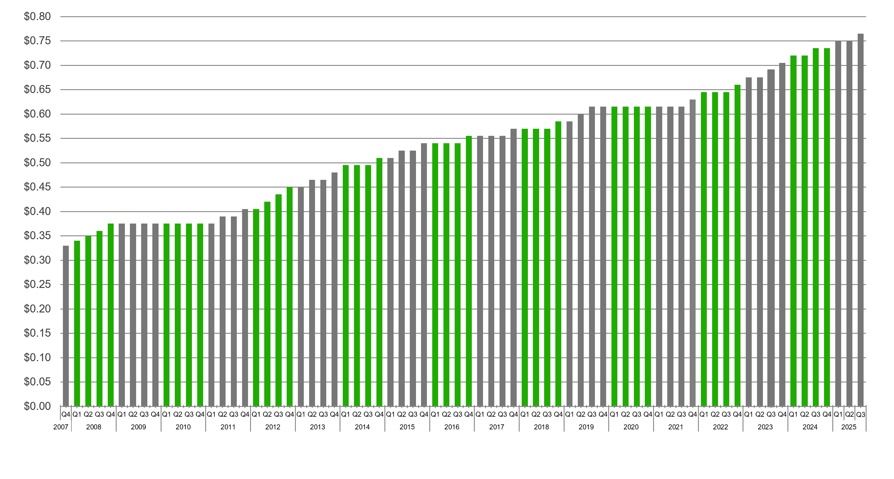 Last Quarter Ended | $0.765 | $0.735 | 4.08% |