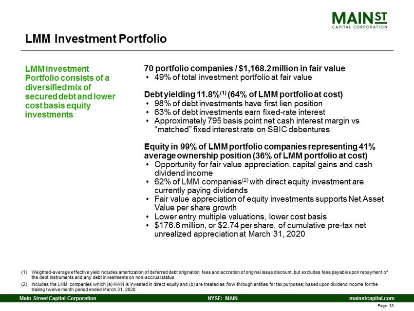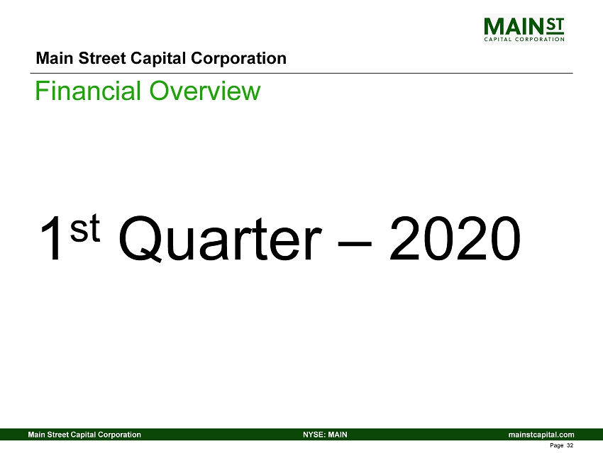 mainstcapital.com NYSE: MAIN Main Street Capital Corporation Page 32 Main Street Capital Corporation Financial Overview 1 st Quarter – 2020