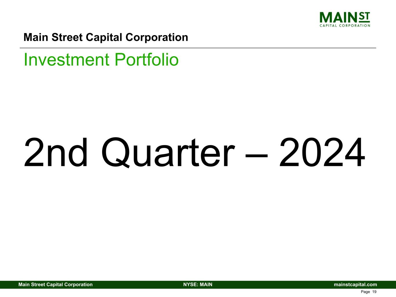 mainstcapital.comNYSE: MAINMain Street Capital Corporation www.mainstcapital.com Page 19 Main Street Capital Corporation Investment Portfolio 2nd Quarter – 2024