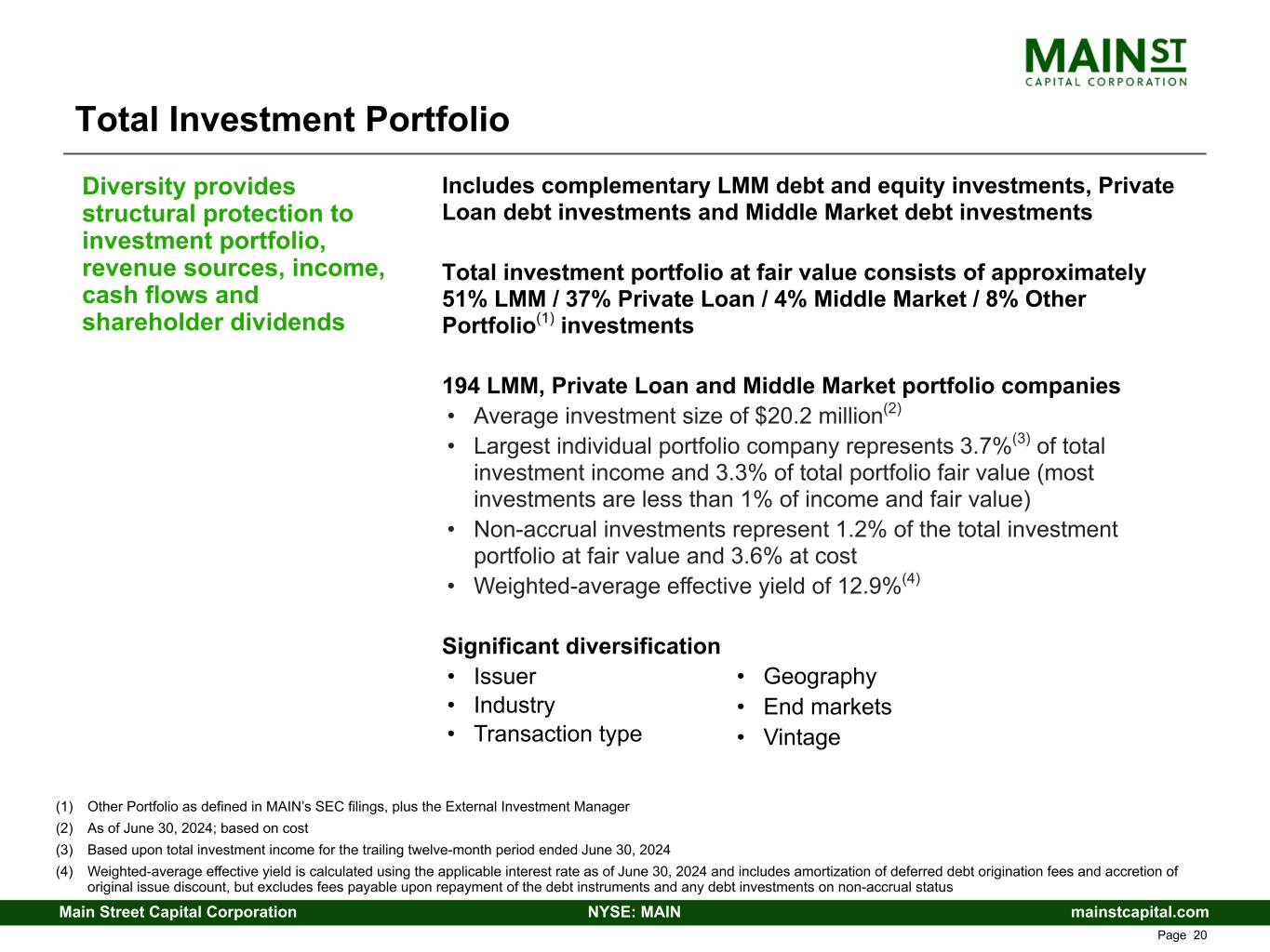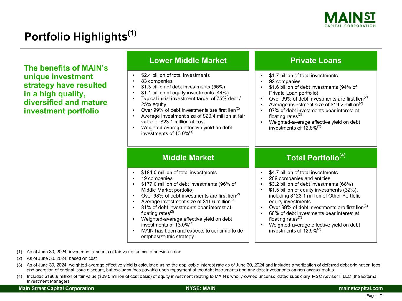 mainstcapital.comNYSE: MAINMain Street Capital Corporation www.mainstcapital.com Page 3 Main Street Capital Corporation 2nd Quarter – 2024