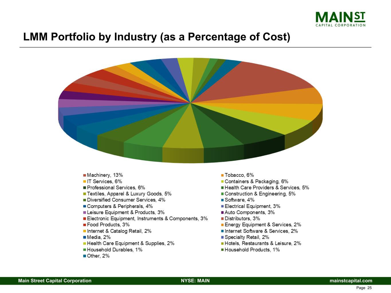 mainstcapital.comNYSE: MAINMain Street Capital Corporation www.mainstcapital.com Page 25 LMM Portfolio by Industry (as a Percentage of Cost)
