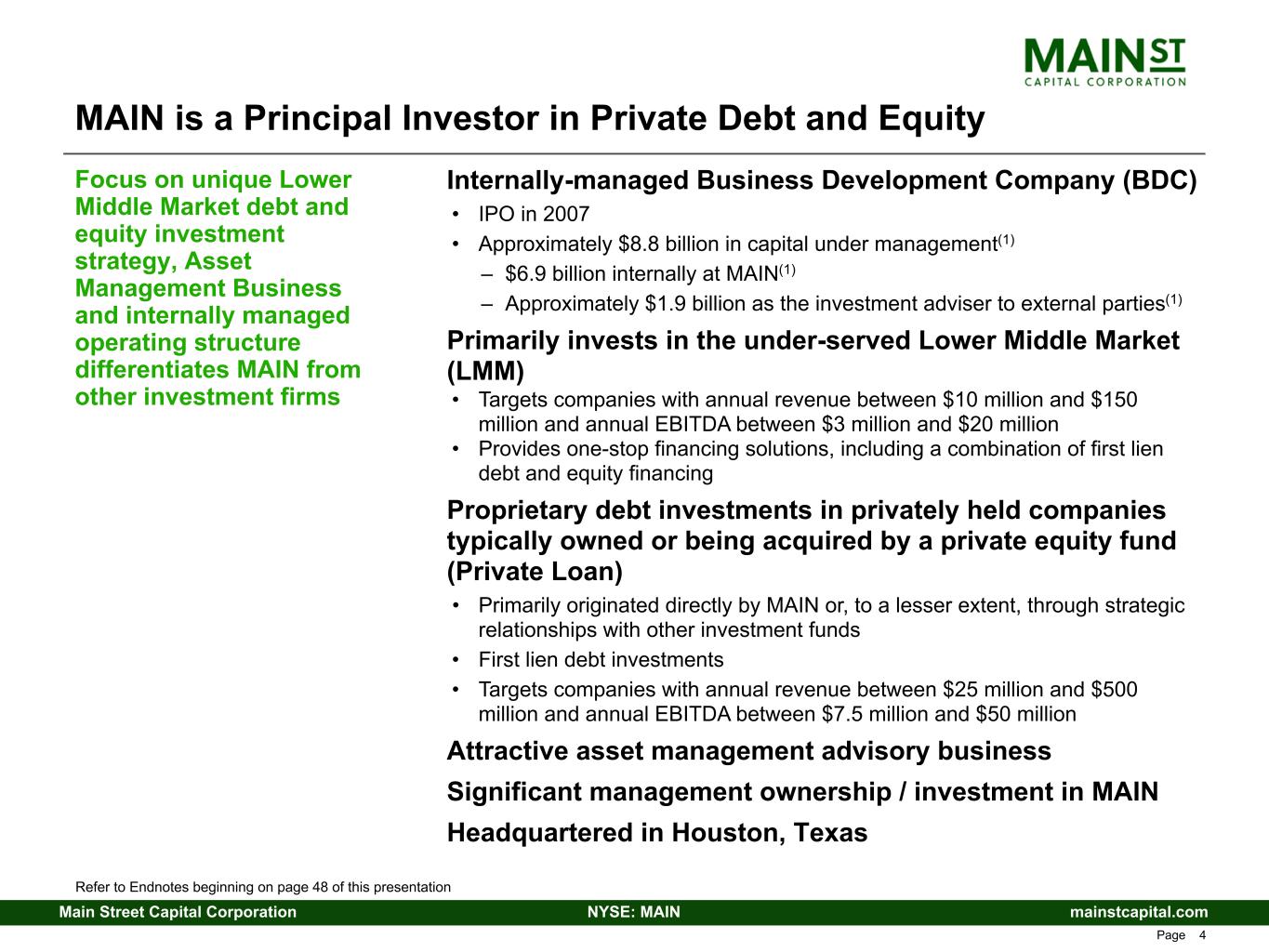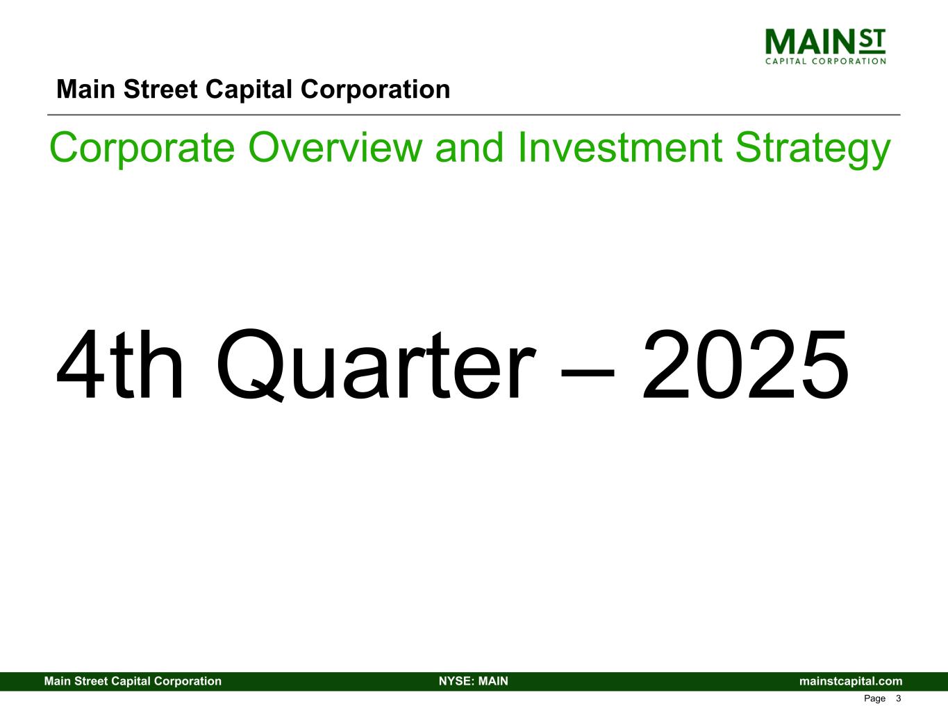 mainstcapital.comNYSE: MAINMain Street Capital Corporation www.mainstcapital.com Page 3 Main Street Capital Corporation Corporate Overview and Investment Strategy 4th Quarter – 2025