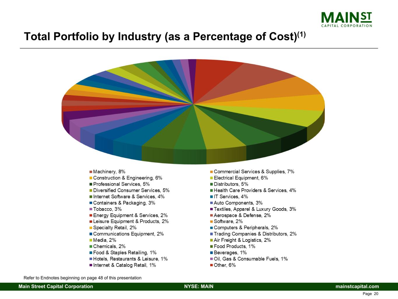 mainstcapital.comNYSE: MAINMain Street Capital Corporation www.mainstcapital.com Page 20 Total Portfolio by Industry (as a Percentage of Cost)(1) Refer to Endnotes beginning on page 48 of this presentation