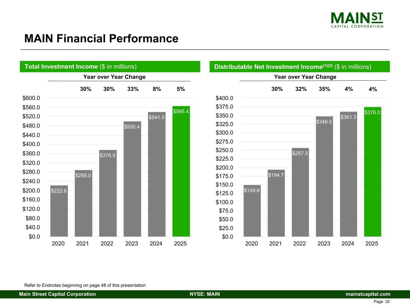 mainstcapital.comNYSE: MAINMain Street Capital Corporation www.mainstcapital.com Page 31 Main Street Capital Corporation Financial Overview 4th Quarter – 2025